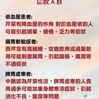 1. 性偏寒涼人士:五青汁屬性偏寒涼,長期飲用削弱脾胃功能,影響消化和吸收