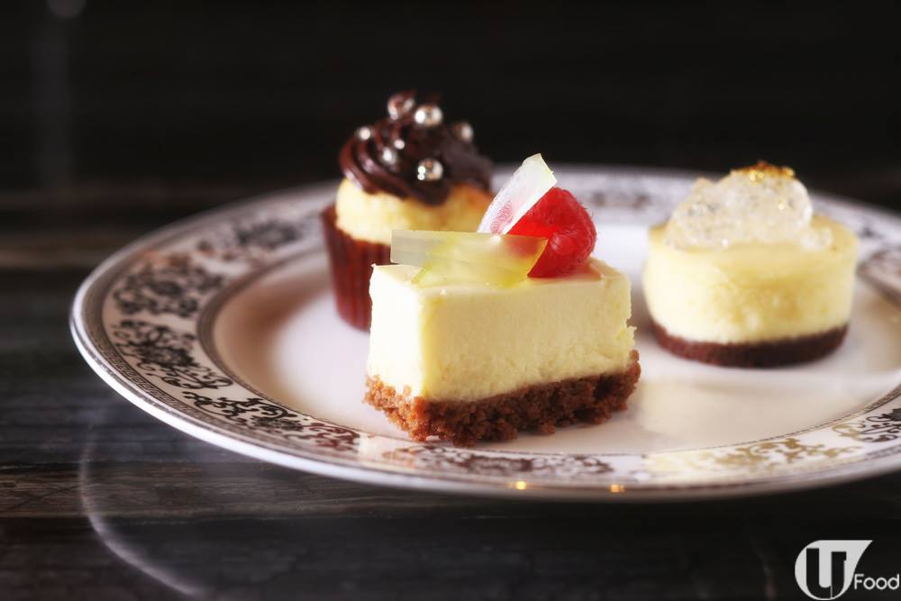 杯子蛋糕以香檳味為基調,面層忌廉則由 64% 法國 Valrhona 朱古力製成,滿口可可香;芝士蛋糕加入香檳做,膩感大減,精髓在於軟糖,用意大利檸檬製造,襯托出香檳微酸。白朱古力慕絲蛋糕很香滑,一定要伴酸甜的香檳啫喱一齊吃。