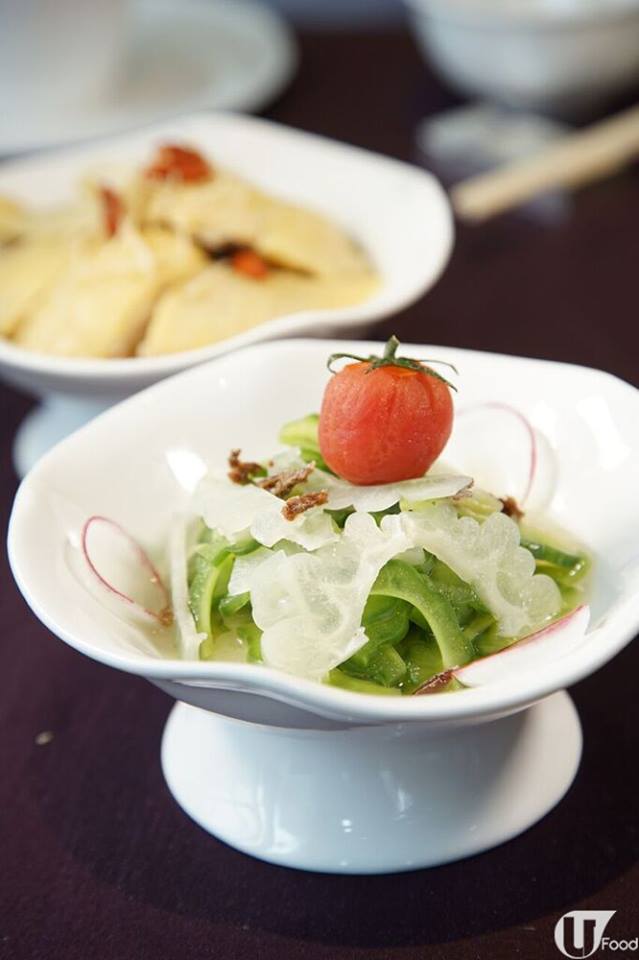 話梅爽脆溫室白涼瓜選用台灣青、白涼瓜,冰涼爽口,滲出話梅清甜味,甘甘哋。鮮人蔘陳年花雕醉雞用本地雞以鮮人蔘、花雕酒及清雞湯慢火浸煮,雞肉不嚡,仲滲出酒香。
