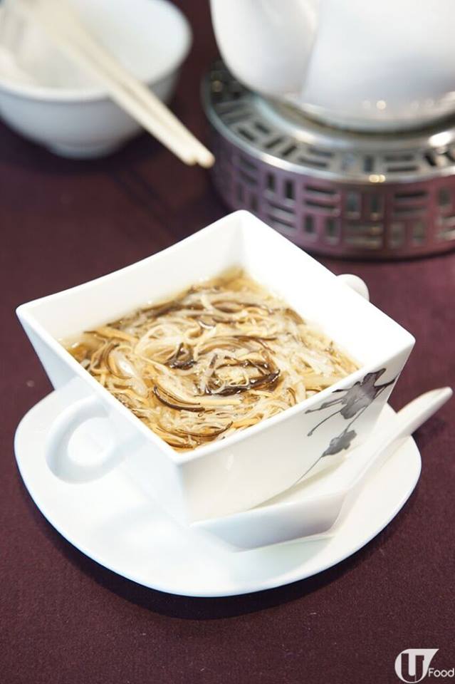花菇鮑魚絲湯羹有鮑魚、瑤柱、花膠、花菇、竹笙、木耳,另配老雞、赤肉、金華火腿熬成的上湯,甘甘甜甜,秋天飲最滋潤。