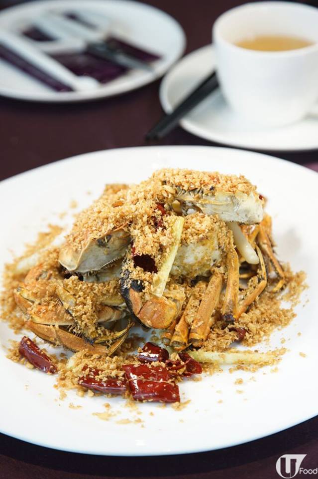 風沙大閘蟹的蟹肉、蟹膏及蟹殼均充滿避風塘的惹味,味道以蒜香為主,帶辣椒的香辣。