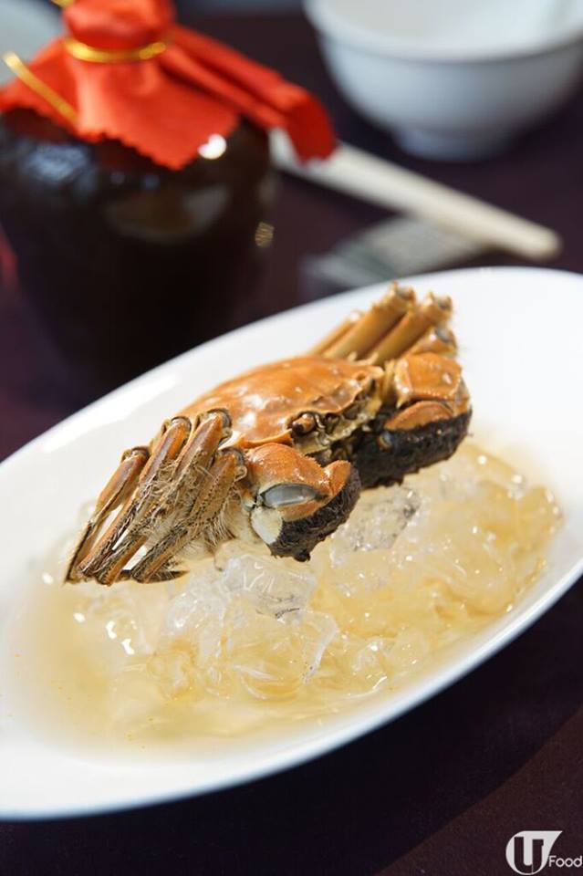 冰鎮黃酒大閘蟹用稀釋冰凍黃酒浸 3 小時,蟹肉滲透酒香。