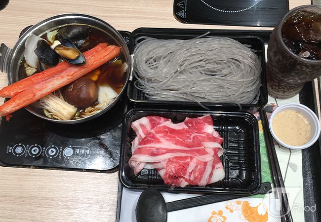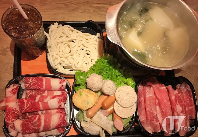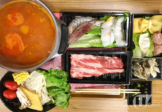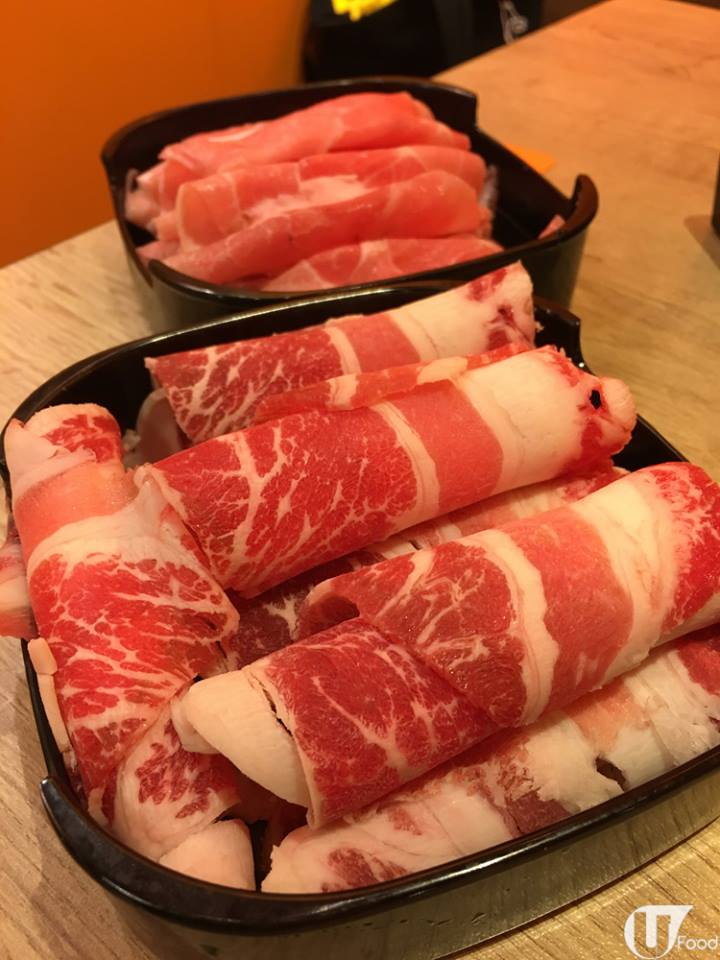先講肥牛,用美國穀飼牛,夠薄身,汆熟後入口即融兼有牛味,豚肉無豬臊味又不太肥,兩款肉類都算高質。其他配料款式都幾豐富,有唐生菜、娃絓菜、油麥菜、金菇、泰式肉丸、枝豆魚餅、胡椒扎肉、煎豆腐及讚岐烏冬,蔬菜夠多,我 like!泰式肉丸及胡椒扎肉好想 encore。湯底方面,有番茄薯仔湯及海帶大概豬骨湯選擇,試過豬骨湯,味道清甜,無乜味精。