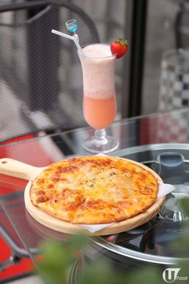 10 吋薄餅鋪滿意大利辣肉腸、火腿、車打芝士、水牛芝士及巴馬臣芝士,熱辣辣食可拉絲。