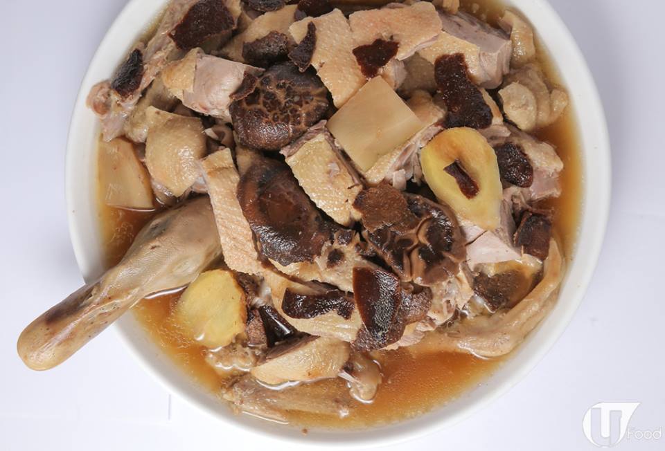 將冬菇、大頭菜等醃料,以及一小杯玫瑰露酒釀進鴨身,再連同陳皮蒸熟。捧出來酒香四溢,齒頰留香,肉質嫩而不羶。