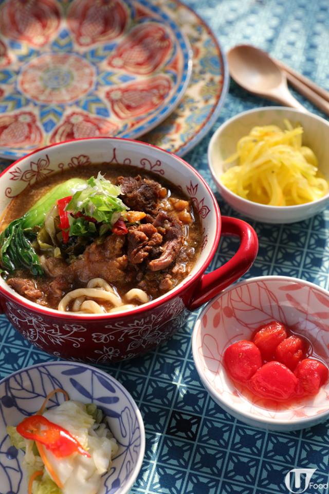 湯底用大量牛骨先煮約 4 小時,再加番茄、蒜頭、洋葱、花椒、豆瓣醬等 10 多款配料熬兩小時而成,味道既辛香又甜;加上軟腍的牛𦟌與煙韌掛湯的上海麵,絕對是用心製作的味道。