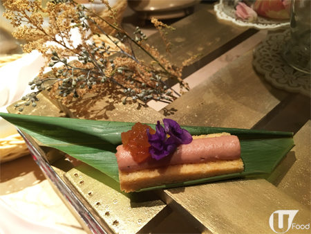 另一款係 法國鵝肝醬多士,多士和鵝肝醬都做成長條形,仲加上食用花點綴,唔似一般鵝肝多士咁悶蛋。多士做得鬆脆,抹上菠蘿酸甜醬,酸酸甜甜同鵝肝好夾,大大中和濃膩感。