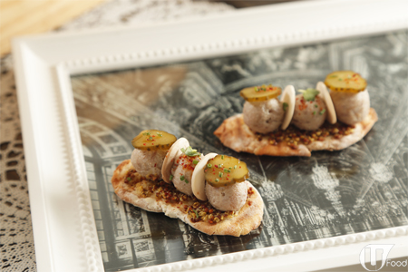 是巴黎的地道風味小食,將豬肉泥做成波波粒,放於鬆脆的多士上,還配上特色酸瓜,好似巴黎人食的豬肉醬三文治。
