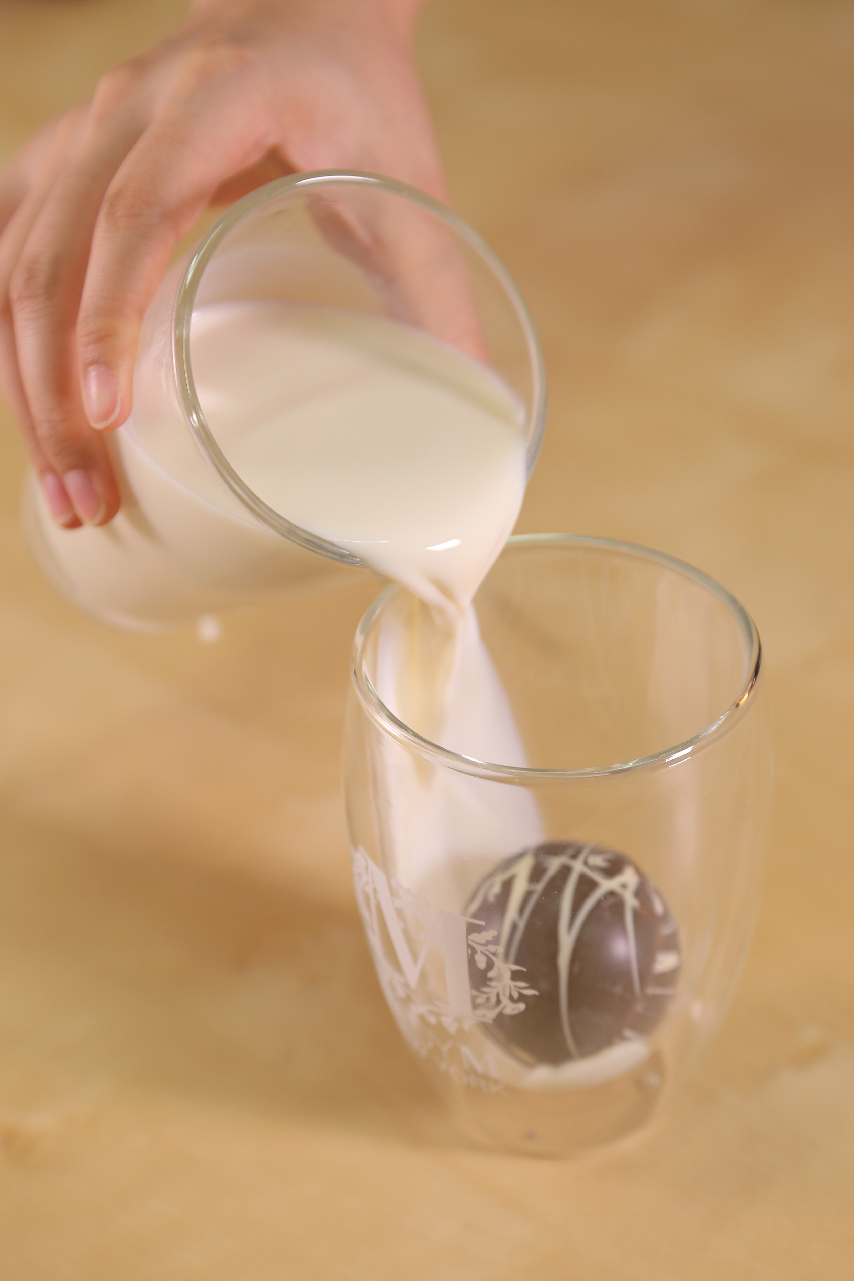 熱朱古力製法好簡單,先預熱一杯牛奶,再將朱古力球放進杯內,倒熱牛奶蓋過朱古力球,再攪勻至朱古力融晒就飲得!簡單方便!
