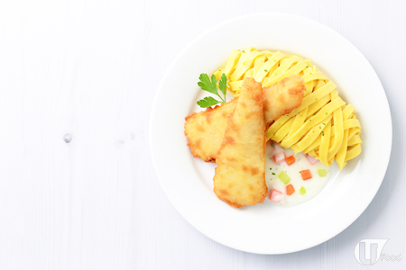 炸鱈魚柳伴闊條麵配雜菜忌廉汁 $36