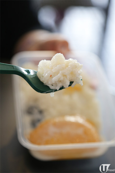 糯米飯經冷藏後,淋上自家製熱椰漿。糯米飯煙韌,椰漿及芒果香甜。