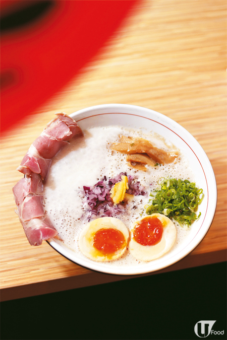 拉麵由本地日本麵廠製作,湯底以大量豬筒骨、豬頭骨與雞殼熬最少十小時,成就出鹽味豬骨湯底,湯色奶白濃厚。招牌的泡沫拉麵有 3 款:柚子味、松露味和木魚味,於每日不同時段輪流上場。午市供應的是柚子鹽豬骨泡沫拉麵,以高知縣的柚子汁打成泡沫唧在拉麵上,再加上柚子皮,清酸味道剛好中和了濃厚湯底的膩;晚市來則可吃到以松露醬與橄欖油打成泡沫的松露鹽豬骨泡沫拉麵,原來村田先生見香港人拍拖都會食拉麵,於是創作出這濃香馥郁的矜貴口味。至於叉燒都係亮點,有兩款選擇,將巴西豬肩肉以不同溫度與時間慢煮過,所以即使是瘦叉都唔會嚡口,其中一款「叉燒 Rose」更以櫻花木冷燻過,色澤帶嫩粉紅,食落還有幾分 Parma ham 的韻味,非常特別。