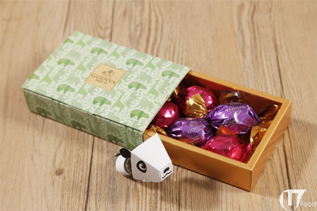 日本零食朱古力就經常有玩具玩,無諗過朱古力名牌 GODIVA 都有呢啲玩意。新推出嘅 松露巧克力紙偶禮盒 $85,內裏除咗有不同組合同口味的朱古力,打開包裝盒仲發現有驚喜,有摺紙玩具!有 4 款動物公仔,包括熊貓、熊仔、長頸鹿同老虎。