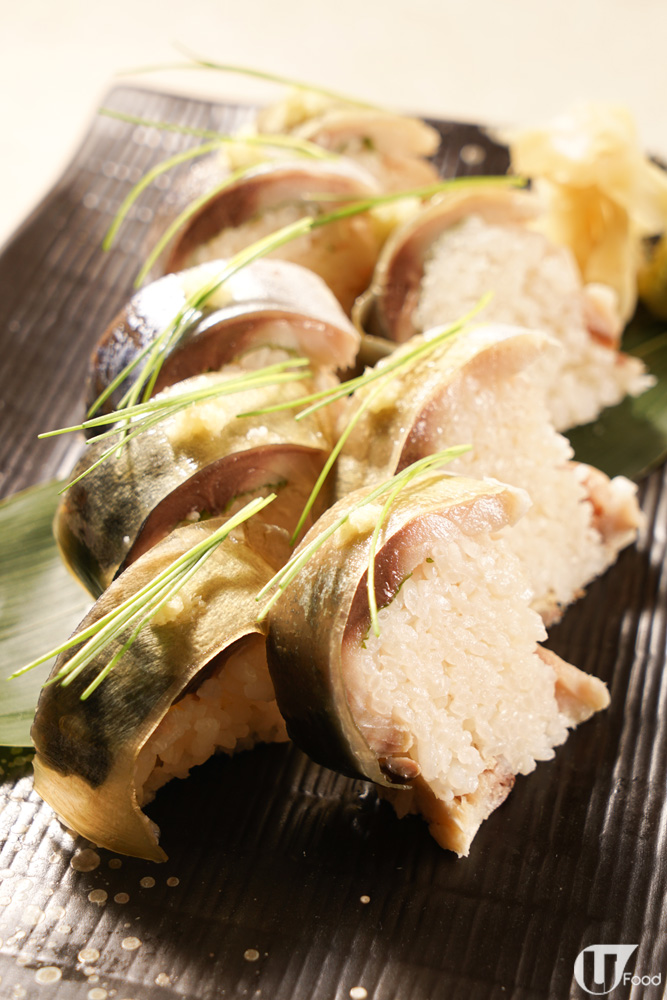 挑選魚油重的真鯖,頗厚肉。白板昆布用醋慢火煲 1 小時,醋酸鮮明。山形縣米乾爽,捏到鬆實度剛好,更突出醋香。