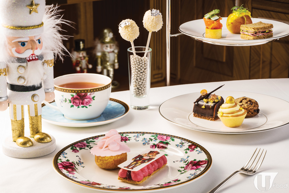 酒店行政糕餅總廚Matthieu Godard以《胡桃夾子》為創作概念,精心打造出胡桃夾子英式下午茶,讓廷廊搖身一變成芭蕾舞台。每款糕點均有如藝術品般精緻,令一眾女士們心心眼!小編最愛以角色命名的「胡桃夾子千層酥」,在鬆脆的酥皮上是甜美軟滑的覆盆子慕斯和果醬,口感豐富,的確不禁再三回味!另外,以女主角Clara命名的「果仁焦糖忌廉泡芙」則以粉紅糖霜芭蕾舞鞋作點綴,小巧細緻,讓人愛不釋手。其他甜點包括:以雲尼拿慕斯及栗子忌廉環繞的「聖誕小樹」、披上65%黑巧克力慕斯及蜜餞香橙的「樹頭蛋糕」、自家焗製的「原味英式鬆餅」及「糖漬香橙鬆餅」,令聖誕佳節更甜蜜美滿。