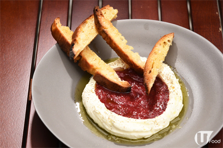 自製乳清起司配草莓醬、橄欖油及自製酸麵包 Mercato