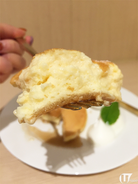 Pancake 睇落重啲,但食落質感輕飄飄!味道完全係 Souffle 嘅味道,好香蛋香味又有麵粉香。Pancake 做到外表微脆、中間軟熟。濕潤度恰到好處,口感綿密幼滑。