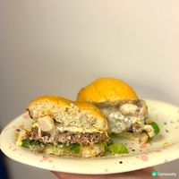 🍔懶人餐都可以好好味?! 佢哋嘅概念係將一道餸變成一個漢堡包,口味方便有懷舊啲嘅亦都有比較新穎嘅概念!Their concept is to bring a single dish into a burger! You will find some nostalgic flavours in the menu item! 黑松露帶子牛肉漢堡 set $104⭐️4.5/5 New menu alert!! 帶子煎得好腍,而且份量好足夠。牛肉漢堡用咗安格斯牛肉嚟製造,配上黑松露嘅醬汁非常惹味。感覺真係好似食咗一道菜咁! 豬柳蛋漢堡 set $82 ⭐️4/5 特登利用牛油去煎過豬柳,中間夾住少少醬汁,配上煎蛋,真係好夾,口感好似一個Breakfast Burger 。唯獨就係覺得個醬汁比較多,輕輕蓋過咗豬柳嘅味道。 港式生炸雞髀 ⭐️4.5/5 呢個大推!雞髀炸得好脆,而且啲肉好腍,焗住咗一陣攞到返屋企食嘅時候仲好脆!上面有少少蜜糖,有啲似BBQ燒烤嘅感覺。 薯餅 ⭐️3.5/5 薯餅炸得唔係特別脆,但係食得出一粒粒嘅薯仔粒,調味料亦都唔錯。 佢哋嘅Menu會不時轉,所以下次想去試吓其他味道! 📍上環蘇杭街2A #薯條#漢堡包#Burger#打卡美食#西餐#上環美食#懶人包